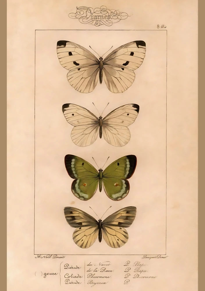 Old-world butterflies arranged with care — vintage curiosity, patience, and the beauty of observation.