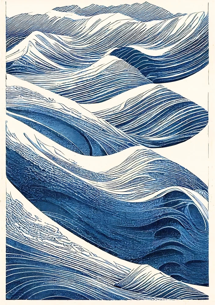 Layered waves in motion, carved and rhythmic, capturing the calm violence of the open sea.