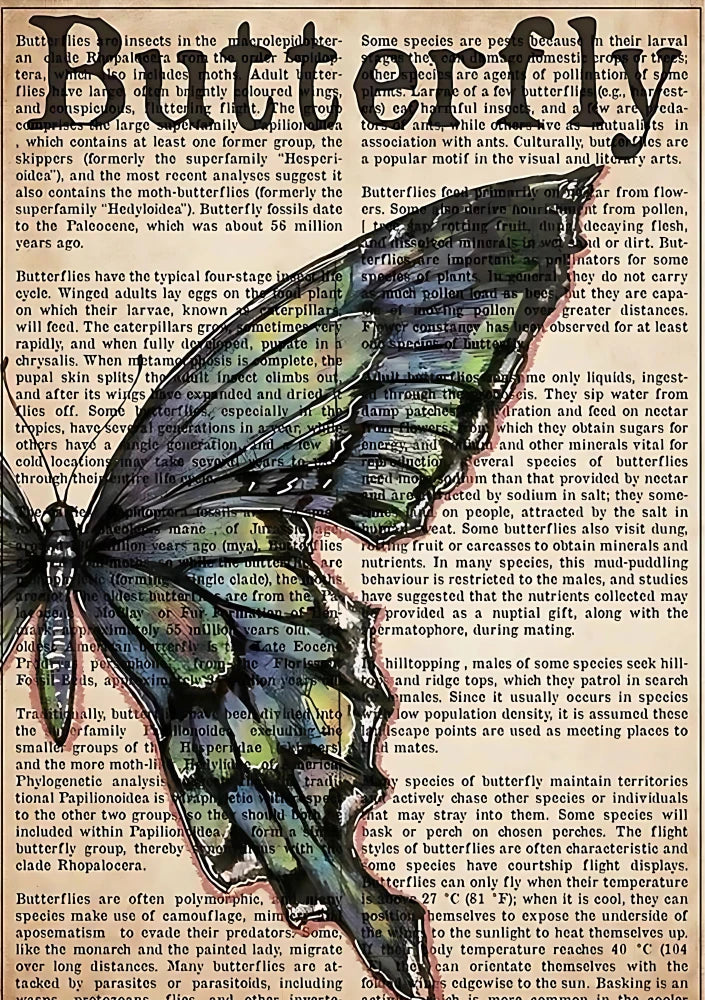 A butterfly suspended over aged text — delicate, observed, and intentionally still. Beauty paused long enough to be understood.