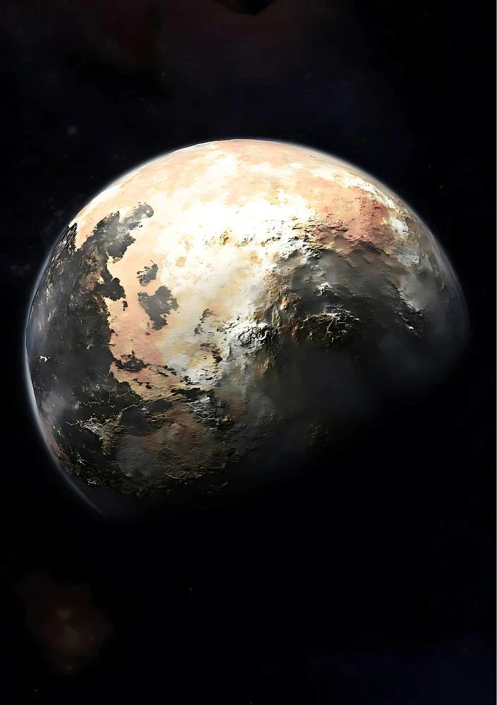 A planet suspended in shadow, textured with forgotten terrain.