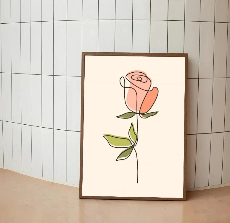 Minimal line art with muted pinks and greens — quiet, romantic, and intentionally understated. Made for calm spaces that don’t need loud decor to feel warm.