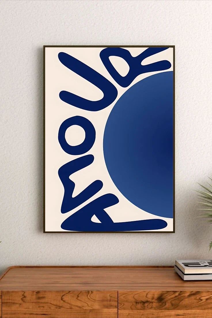 Soft blues, deep indigos, and quiet navy tones come together across art prints, florals, patterns, and vintage references. The result feels calm, intentional, and effortlessly aesthetic—never loud, never busy.